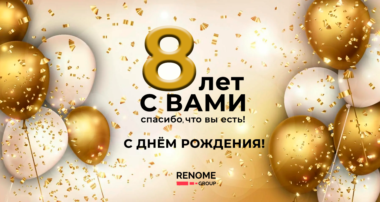 Группе компаний Реноме – 8 лет! Поздравляем всем коллег с праздником, желаем счастья, здоровья, ярких достижений. Спасибо за ваш труд и профессионализм.